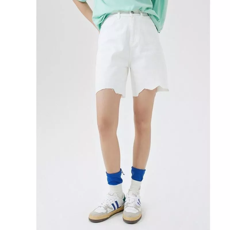 These Bermuda shorts are more than just a piece of clothing; they are a statement of style and comfort. Perfect for a variety of occasions, from a casual day out to a laid-back evening event. The solid color design makes them incredibly versatile, allowing you to pair them with any top or accessory effortlessly. The unique wave cut decoration adds a touch of elegance and uniqueness, setting these shorts apart from your regular denim wear.
