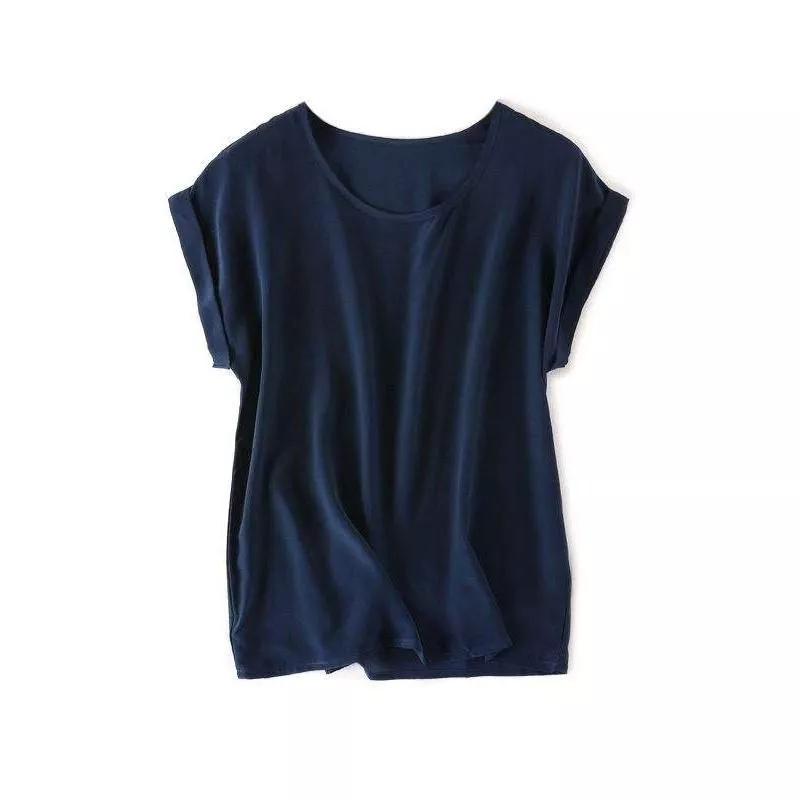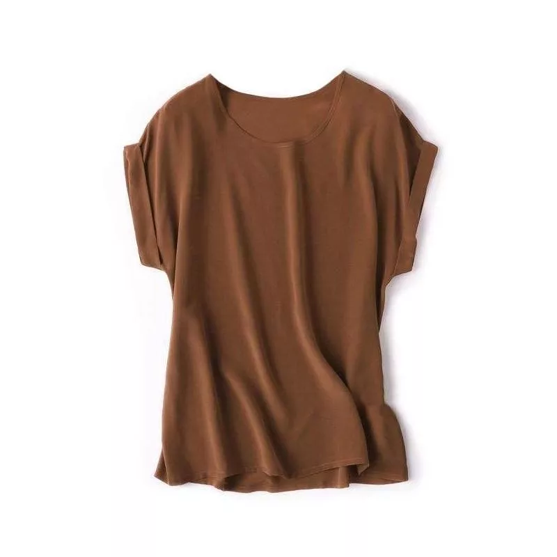 Our silk tee boasts a range of features that set it apart. The batwing sleeves offer a modern twist to the classic tee, providing both style and ease of movement. The solid color design ensures versatility and timelessness. Made from 100% Mulberry silk, the fabric feels luxurious against your skin while offering durability and breathability. The O-neck collar and regular fit complement various body types, making this top a must-have in every wardrobe.