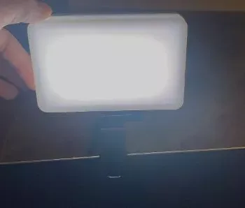 This is the go-to light, and it works wonders. It has scrolling knobs to adjust dimness and warmth. You can clip it onto phones (and with some creativity, many other things). It does require recharging, but it has a sequence of four little lights to display the remaining battery level, and a charging cable is included – it's also compatible with common chargers. A game-changer for professional video and even hobby content creation!