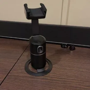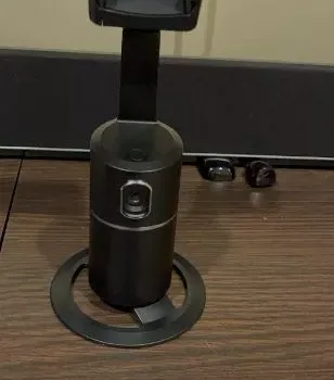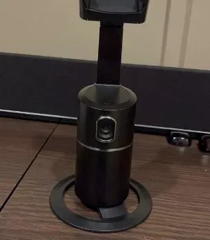 What an elegant little device! It operates by tracking your face, and I'm absolutely delighted with it. It's quite responsive, though there's a bit of a learning curve, but overall, it's fantastic. It's compact and sturdy, and it securely holds my phone in both portrait and landscape orientations, preventing any tipping over. Its compact size is a plus.