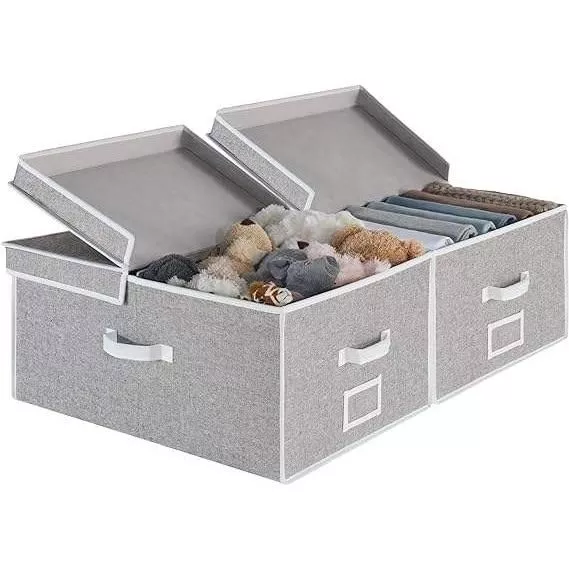 Our storage bin is more than just a place to stash your stuff. With features like a removable central divider, label holder, and double-open lid, it offers flexible compartment storage, clear identification, and easy access. Whether you’re organizing clothes, towels, magazines, blankets, or office and craft supplies, this jumbo basket caters to all your storage needs. It’s perfectly suited for closets, shelves, and wardrobes, ensuring your essentials are neatly stored and within reach.