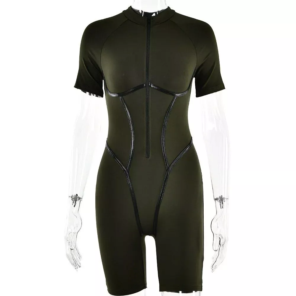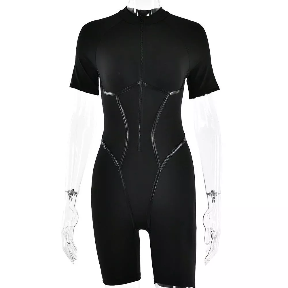 Made from high-quality polyester, our playsuit boasts a thick yet comfortable fabric that contours gracefully to your body. With a mid-waist design and regular fit, it offers the perfect blend of comfort and style. The high elastic fabric ensures a flattering fit for all body types, while the slight stretch allows for freedom of movement. Plus, the striking striped pattern and sleek zipper decoration add a touch of edgy flair to your look.
