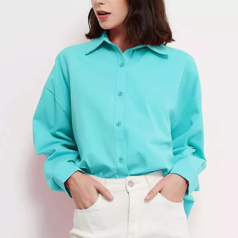 The blouse features a classic turn-down collar and a practical single-row two-button closure, offering both style and ease of wear. The straight clothing pattern flows elegantly, complementing various body types. With a standard thickness, it strikes the perfect balance between being lightweight yet cozy, suitable for ages 18-35 years old.