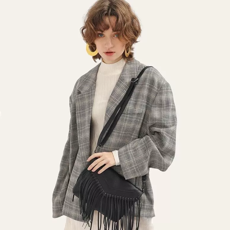 Luxury Leather Tassel Crossbody Saddle Bag for Women