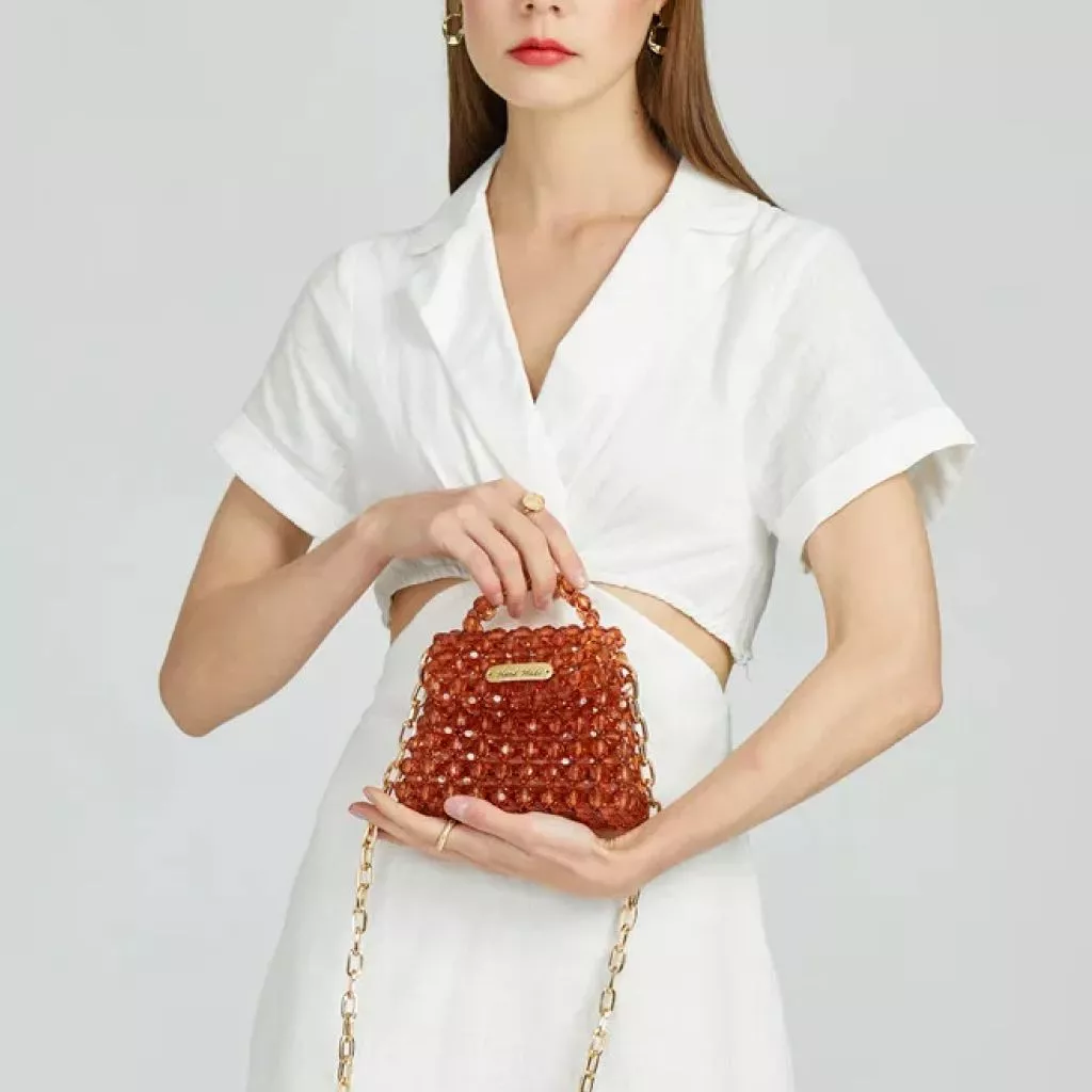 Chic Pearl Beaded Acrylic Crystal Stone Box Tote