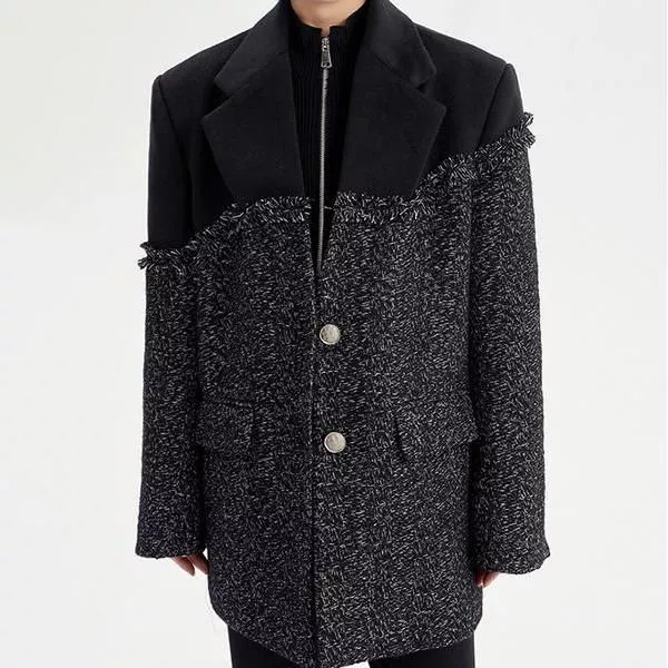 Introducing our Loose Fit Black Tweed Big Size Irregular Woolen Coat Parkas, a captivating blend of fashion-forward design and cozy comfort. This new long sleeve coat is a true statement piece that effortlessly combines style with warmth.