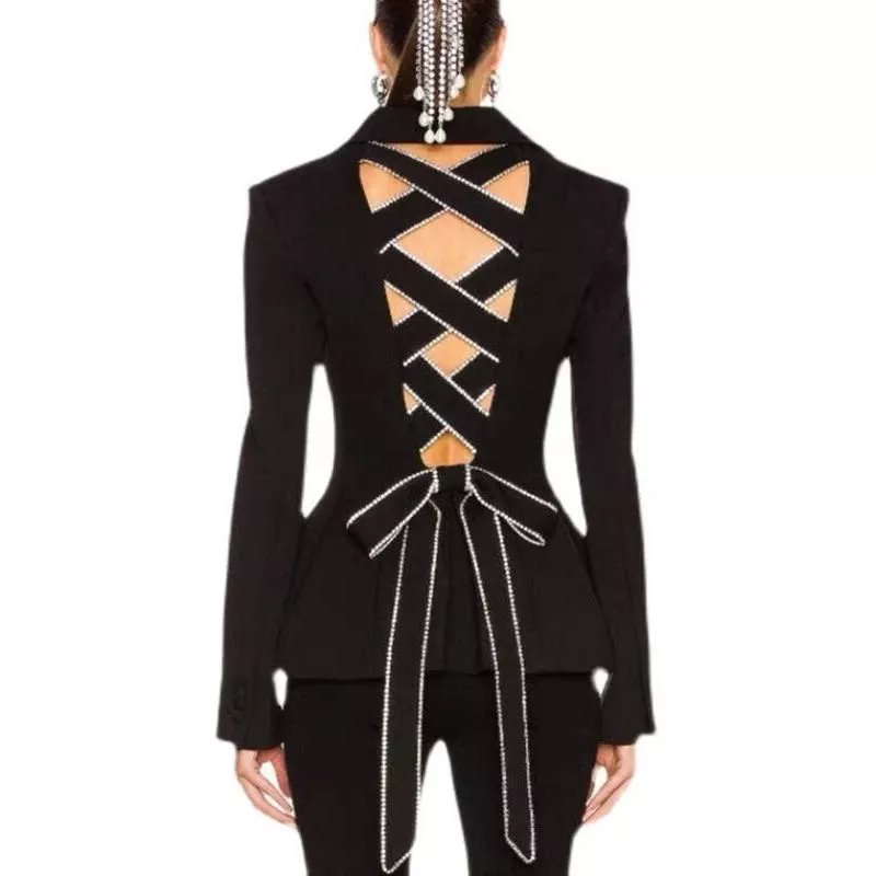 Diamond Hollow Out Bow Tie Women’s Blazer