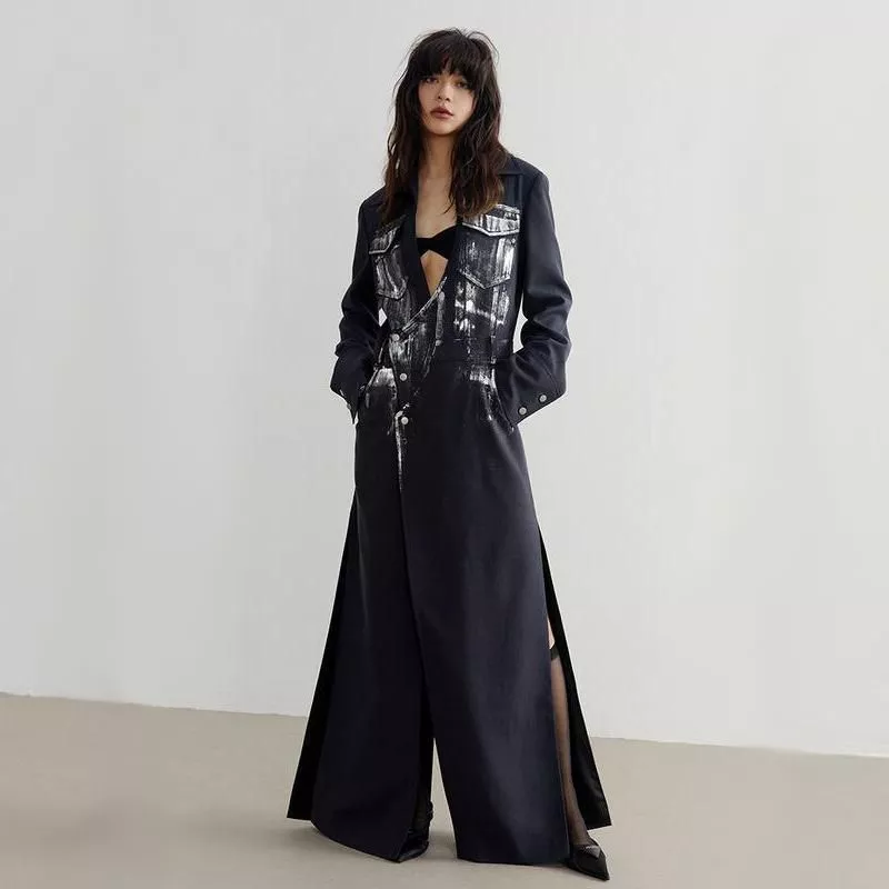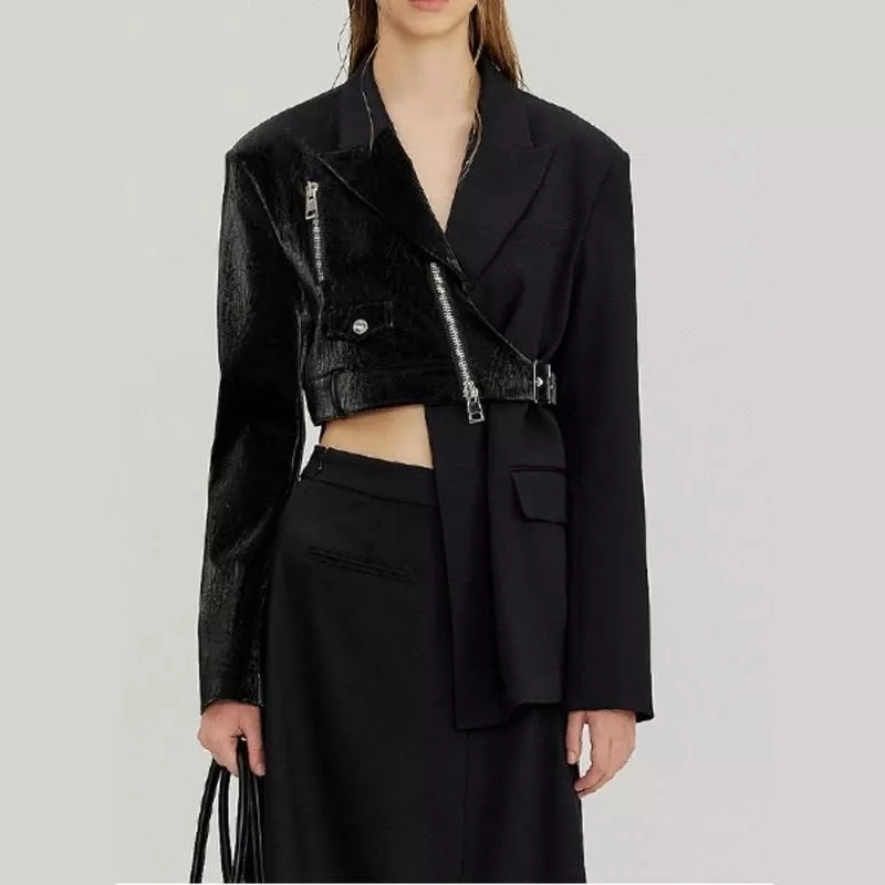 Chic Irregular Women’s Blazer with PU Leather Splicing