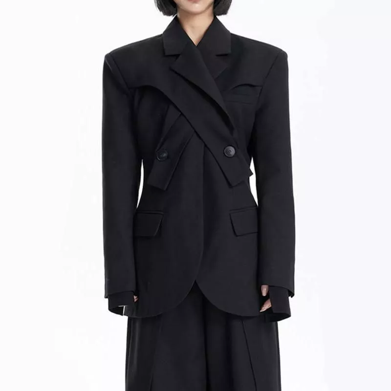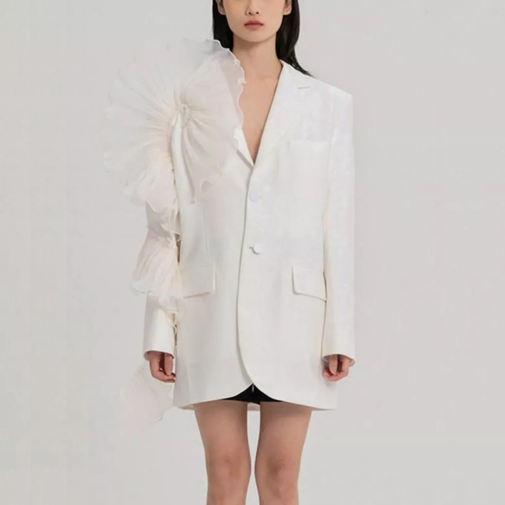 Elegant Asymmetrical Ruffle Suit Jacket for Women