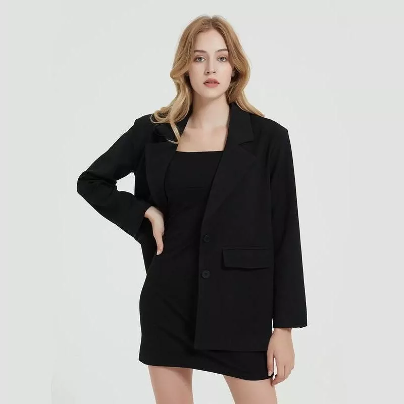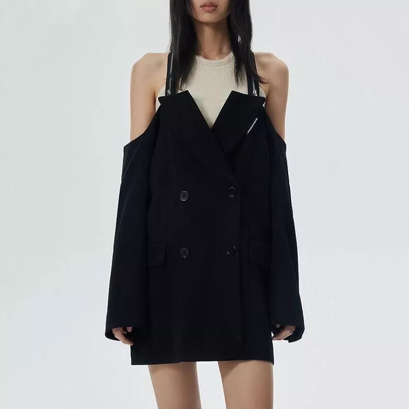 Chic Halter Neck Double Breasted Black Blazer for Women