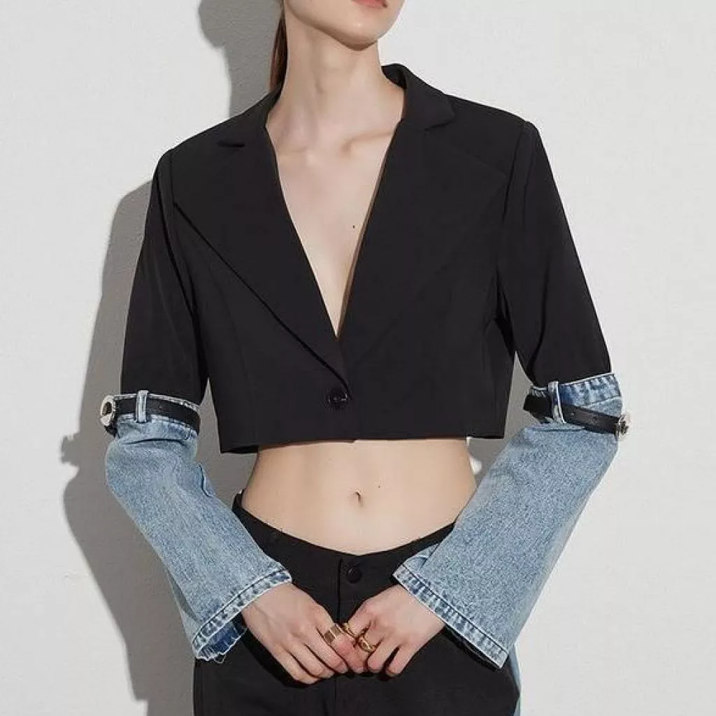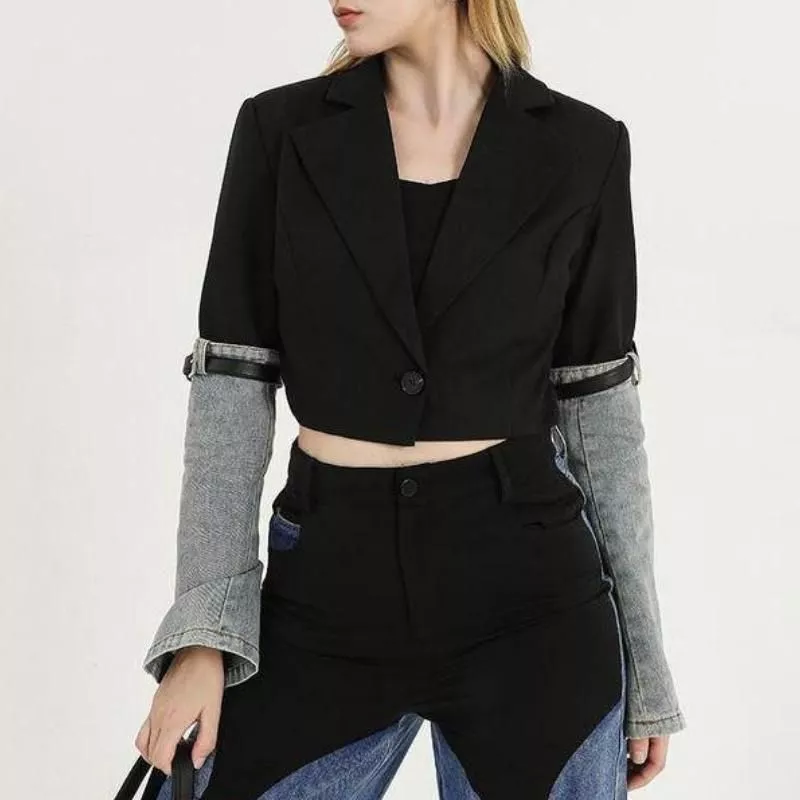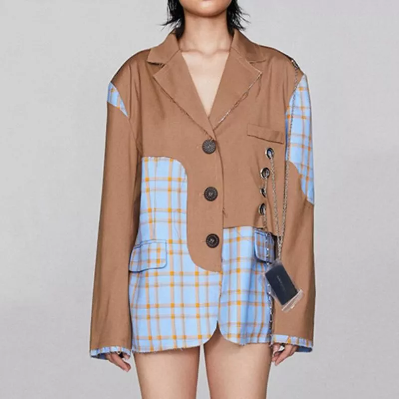 Fashion Women’s Blazer: Stylish Contrast Color Designer Jacket