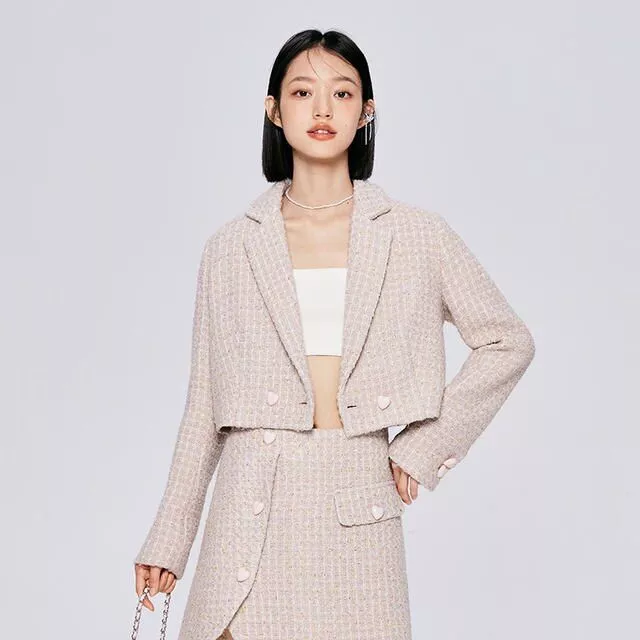 Chic Winter Checkered Blazer with Chain Accent for Women