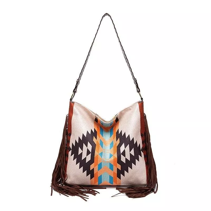 Introducing a stunning blend of casual charm and bohemian flair, our large canvas shoulder bag is designed to elevate your everyday style. Crafted from high-quality cotton and linen, this bag features a vibrant, geometric pattern complemented by playful tassels, encapsulating a vintage Bohemia style. Perfect for a variety of occasions, from a casual day out to a stylish evening event, this bag is as versatile as it is fashionable.