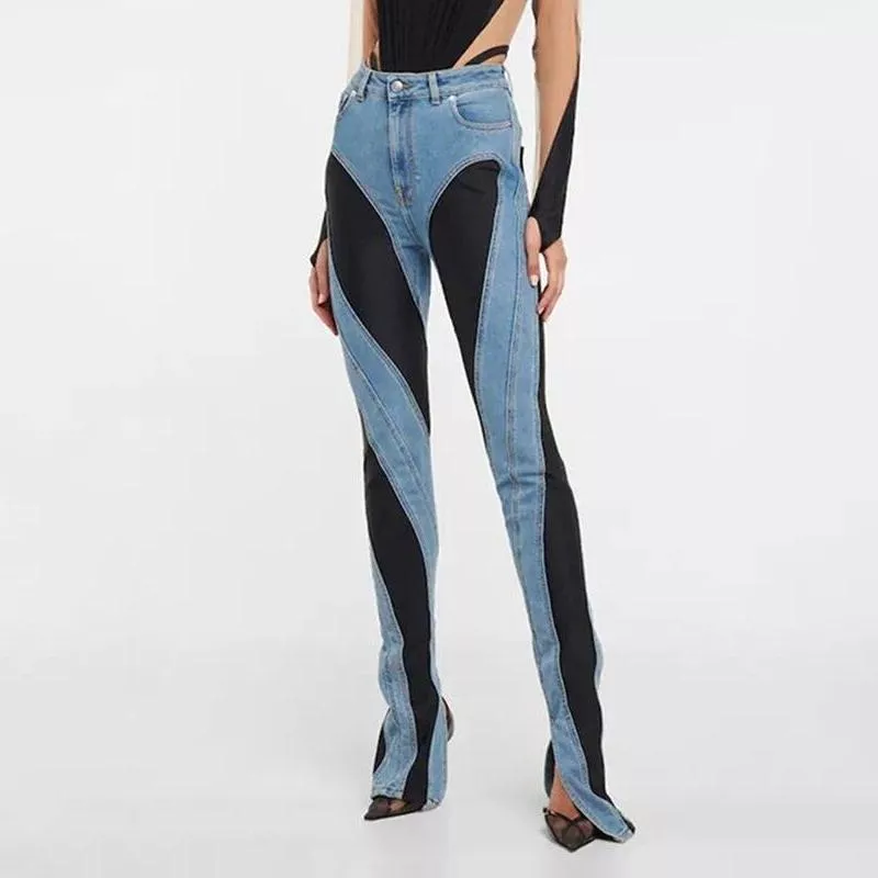 High Waist Slim Fit Patchwork Denim Pants