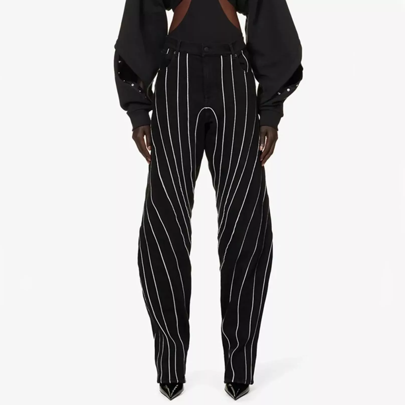 High-Waist Wide-Leg Pants with Unique Patchwork Design