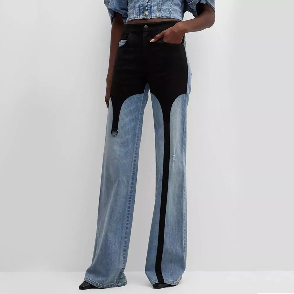Trendy Patchwork Straight-Leg Jeans for Women