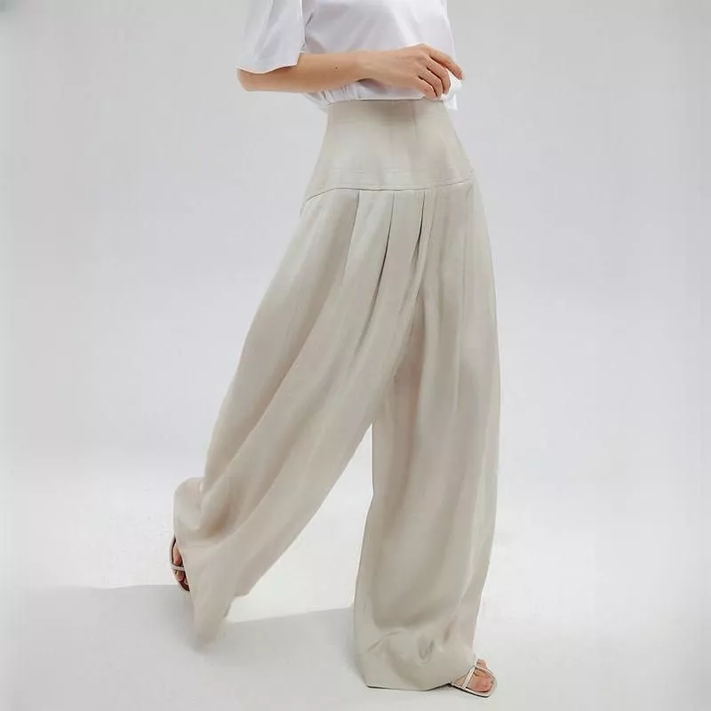 Elegant High Waist Pleated Wide Leg Trousers for Women