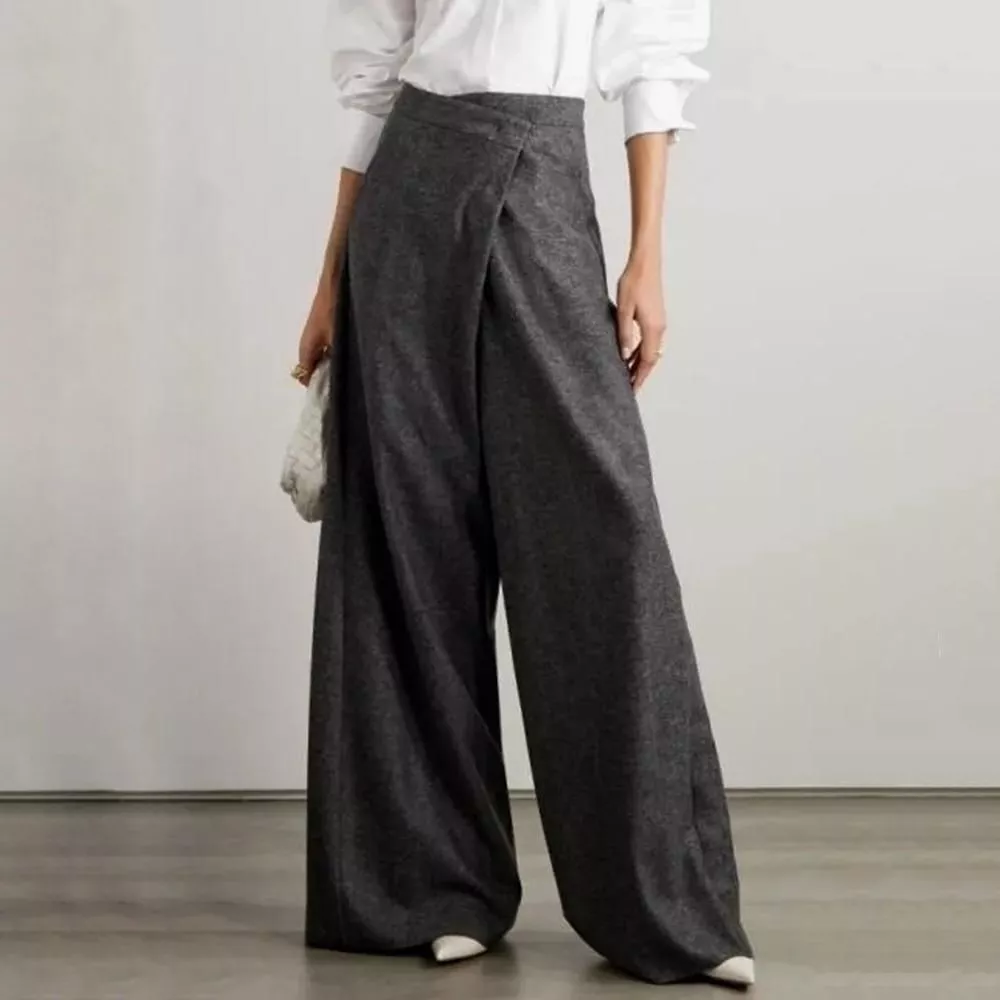Chic High Waist Woolen Wide Leg Pants for Women