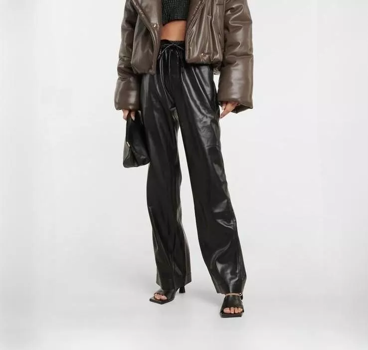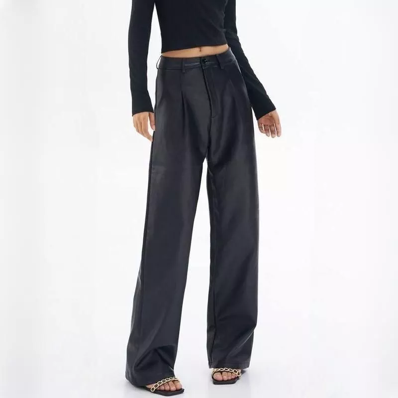 Faux Leather Wide Leg Trousers for Women