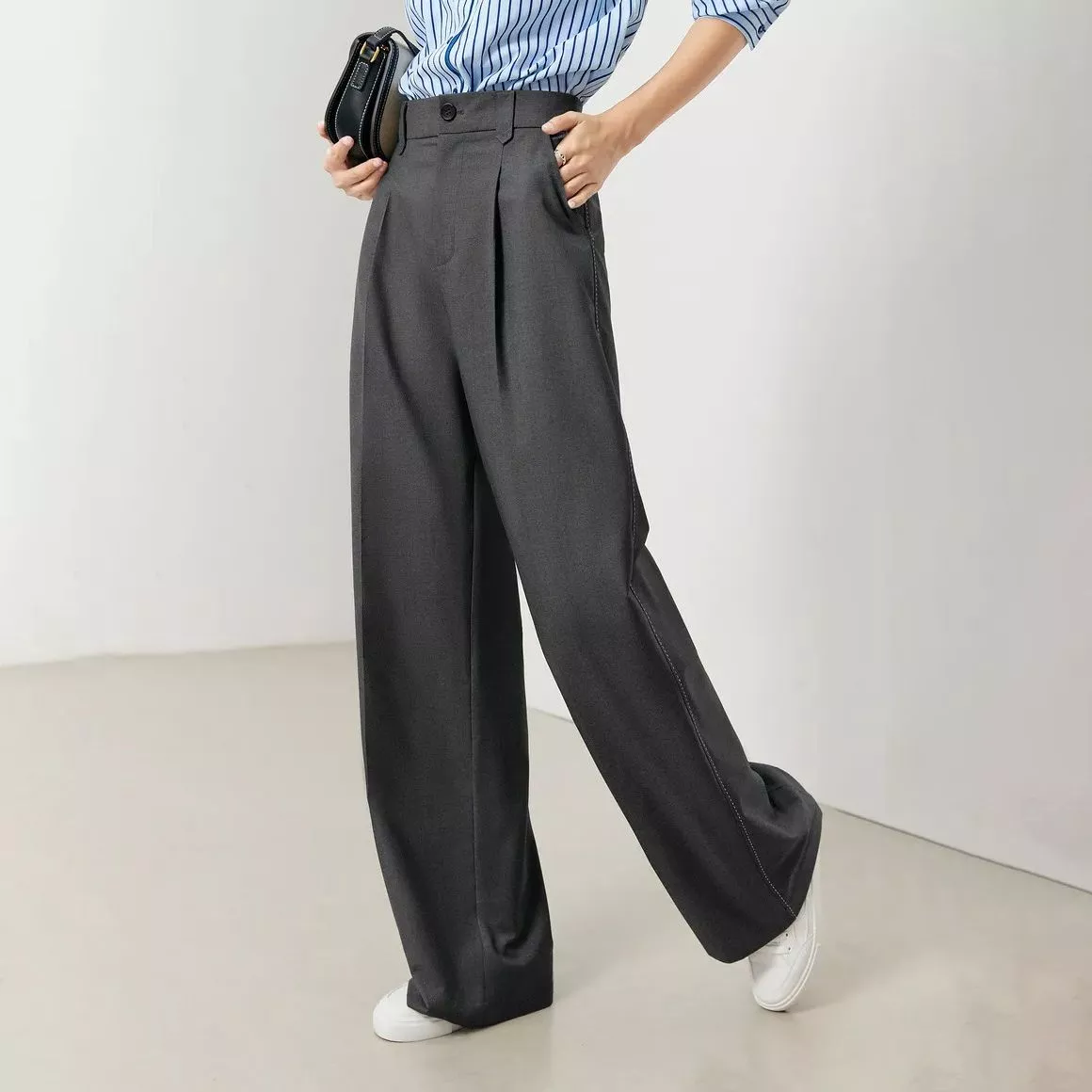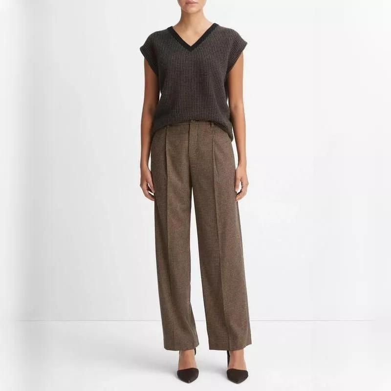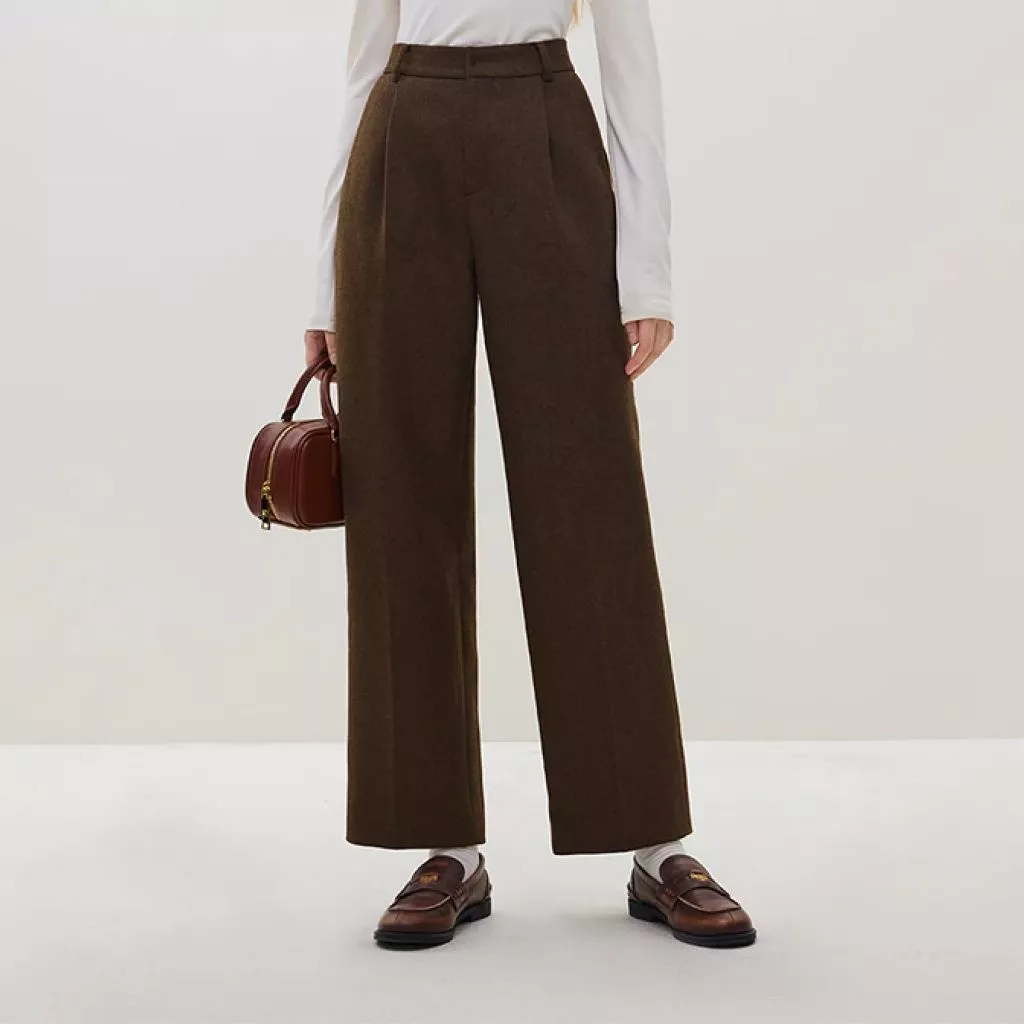 Classic High-waisted Wool Straight Pants for Women