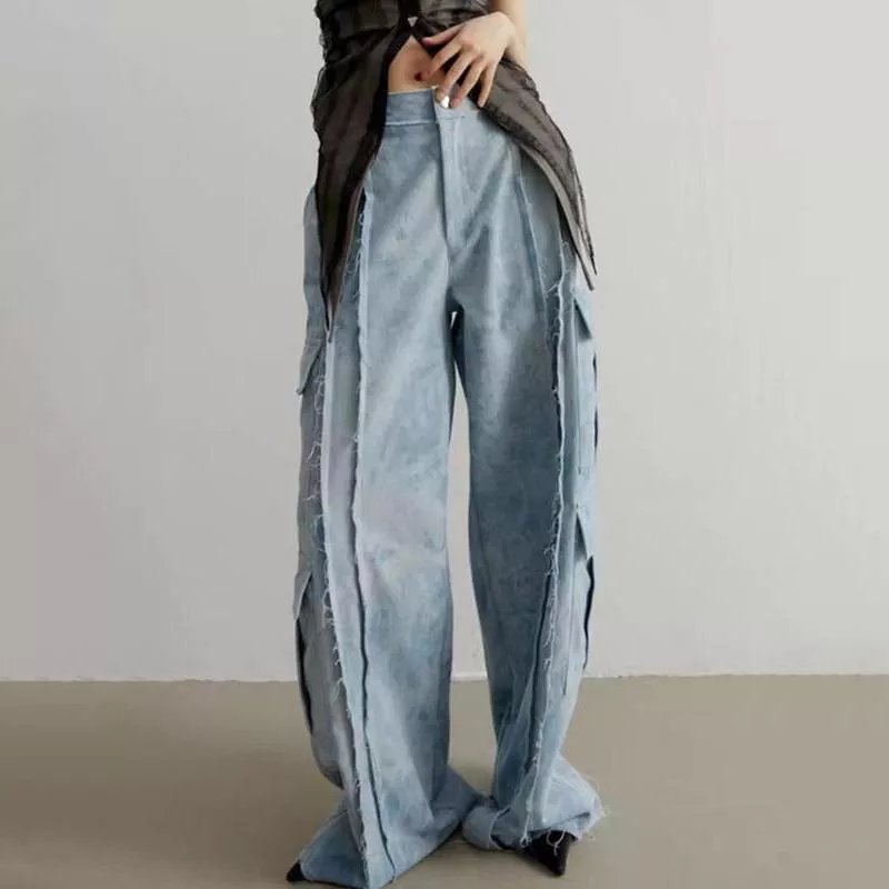 Chic Streetwear Gradient Washed Jeans with Wide Leg Design
