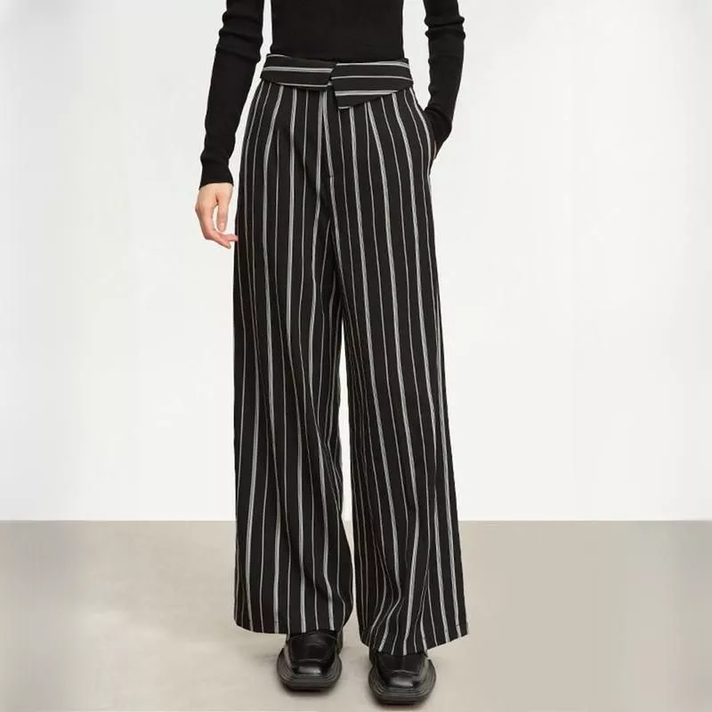 Elegant Autumn Wide-Leg Striped Trousers for Women