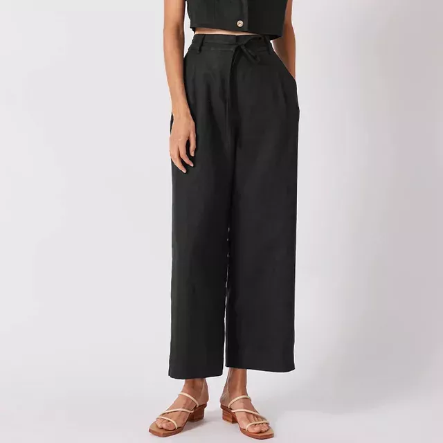 Elegant High Waist Cotton-Linen Wide Leg Pants for Women