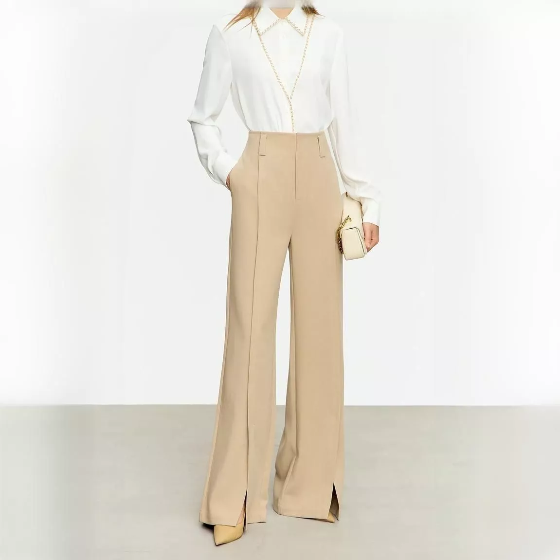Winter Casual Chic Wide-Leg Pants with High Slit