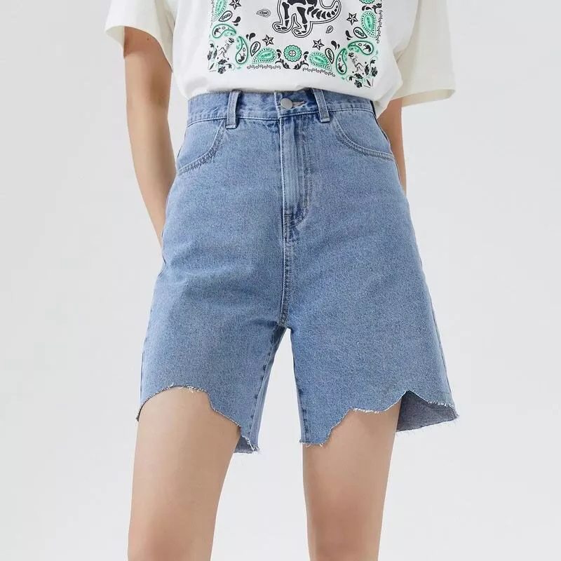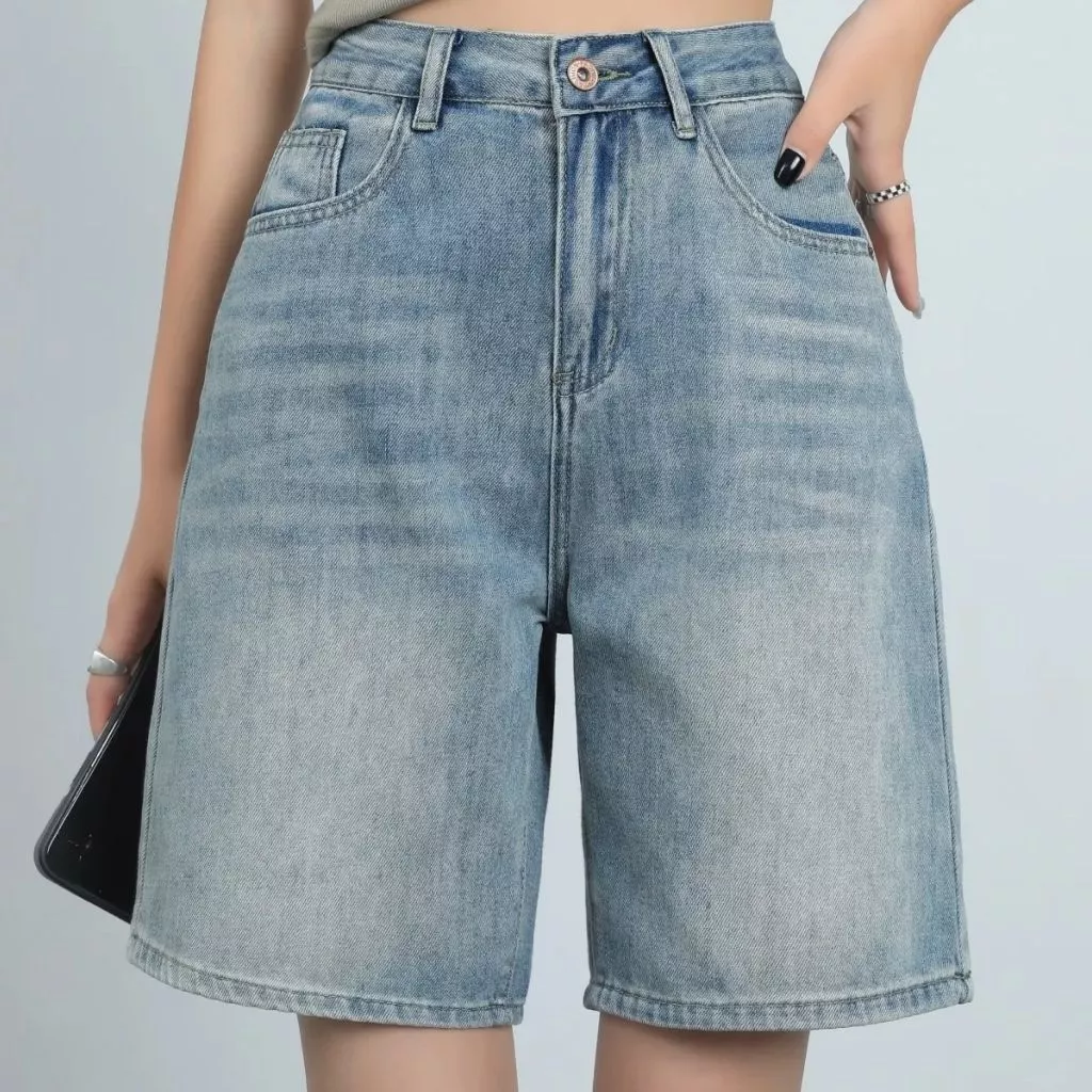 High Waist Knee Length Denim Shorts for Women