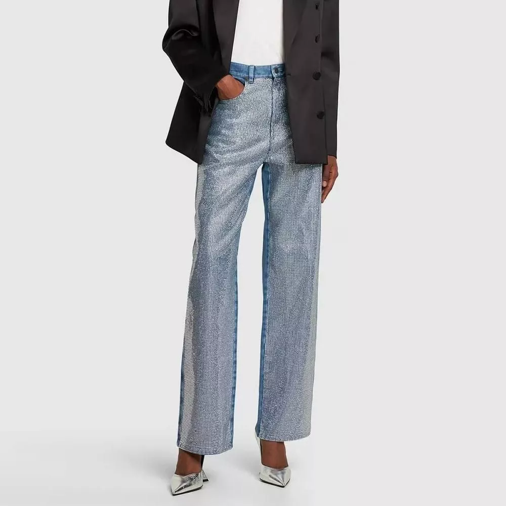 Metallic Gold Silver Straight Leg Jeans