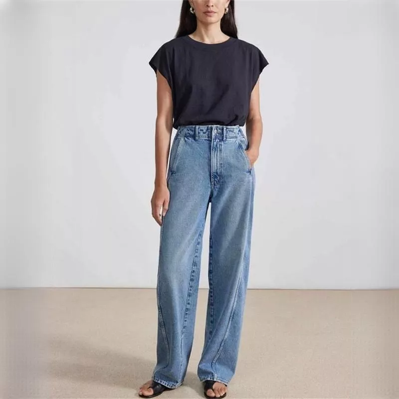 High Waist Casual Straight Wide Leg Jeans