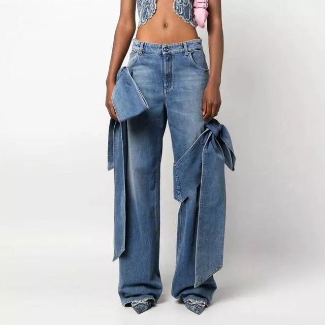 Spliced Bowknot Casual Jeans