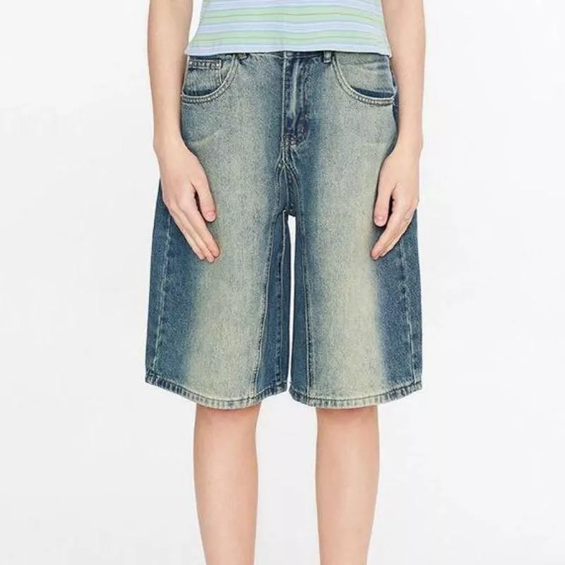 Y2K Vintage Gradient High Waist Baggy Denim Shorts