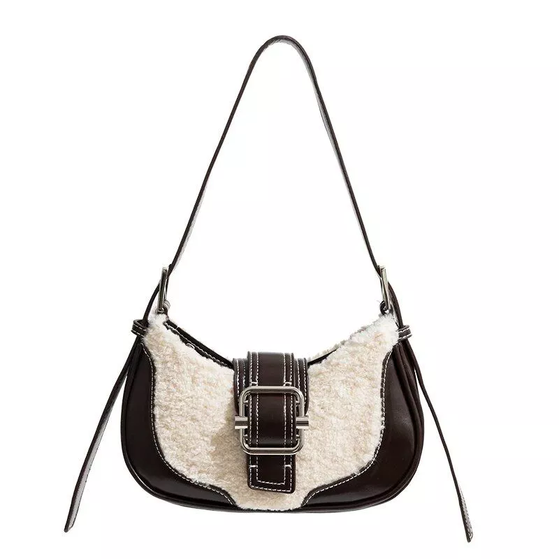This stunning handbag is made from high-quality faux fur and PU leather material, ensuring durability and a plush feel. The saddle hasp design combined with the unique half-moon shape adds a touch of luxury to your ensemble. You’ll love the super soft and comfortable feel of this handbag, making it your go-to choice in all seasons.