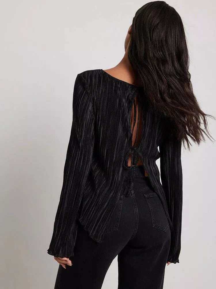 Our blouse is crafted from a luxurious blend of polyester and spandex, ensuring a comfortable fit and a gentle touch against your skin. The delicate butterfly sleeves add a touch of whimsy, while the pleated design brings an element of refined elegance. The solid satin fabric, with its subtle sheen, enhances the overall allure of the garment. It’s more than just a blouse; it’s a statement of your exquisite taste.