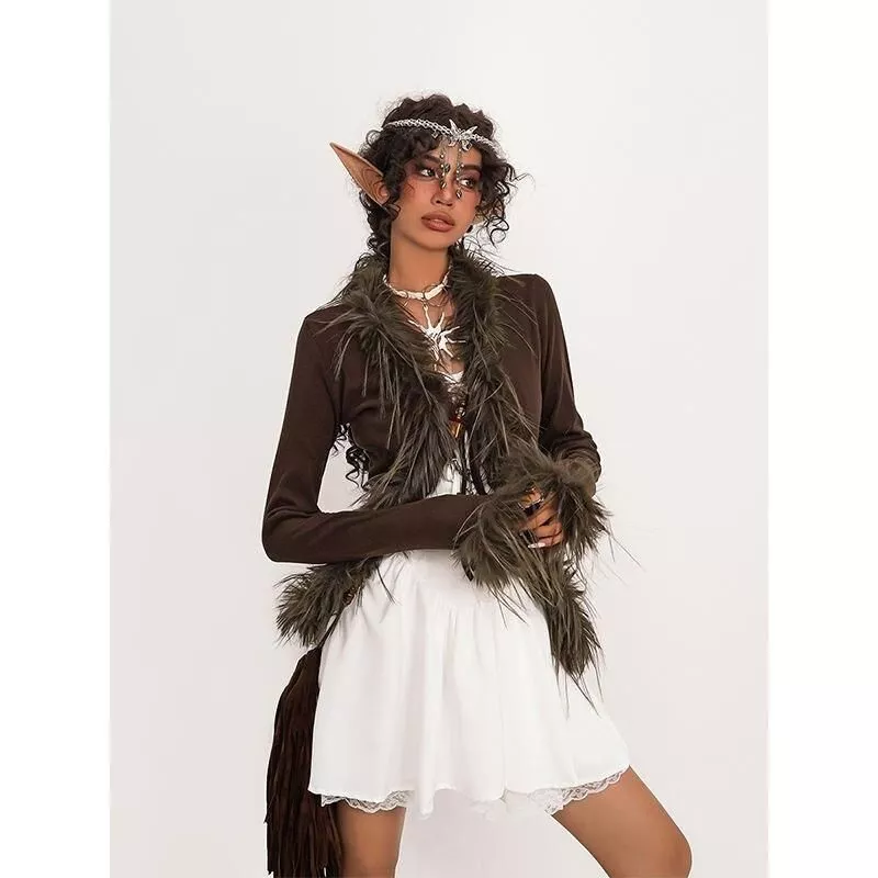 This cardigan boasts a unique lace-up V-neck, adding a touch of allure to the classic cardigan design. The faux fur patchwork provides a luxurious feel, while the slim fit silhouette ensures a flattering look for any body type. Made from high-quality polyester, it offers both durability and comfort. Its full sleeves and standard thickness make it ideal for those breezy spring days or cool summer evenings.