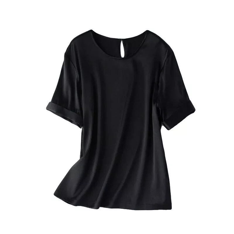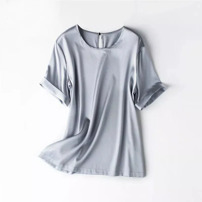 Discover the perfect blend of luxury and comfort with our Classic Navy Silk Tee. Designed for the modern woman who values both style and comfort, this tee is a must-have addition to your summer wardrobe. Crafted with a high-quality blend of 95% silk and 5% spandex, this top offers a smooth, lustrous finish and a touch of stretch for ultimate comfort. Whether you’re stepping out for a casual brunch or dressing up for an evening event, this chic T-shirt is your go-to choice.