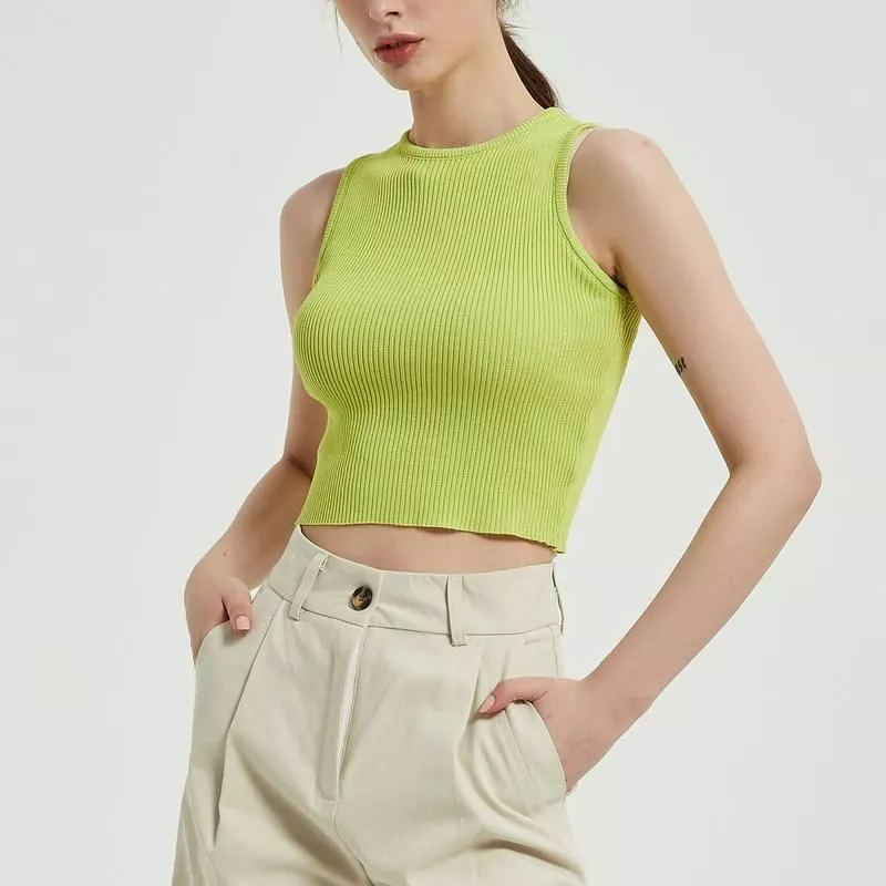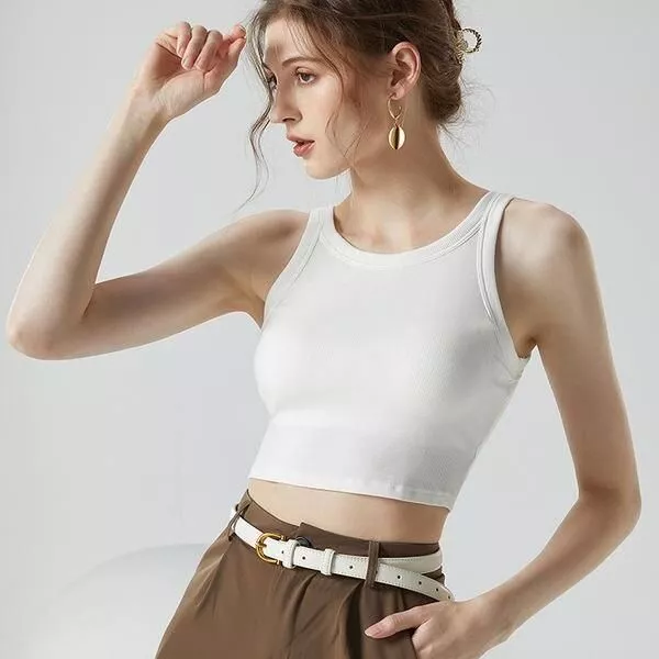 Elegant Ribbed Camisole Crop Top with Built-In Padding