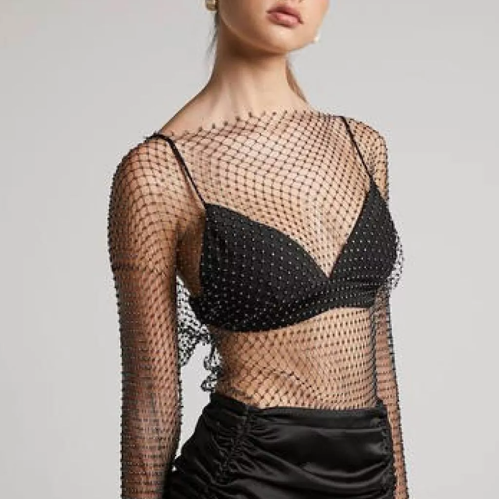 Sheer Rhinestone Studded Cover Up & Triangle Bikini Set