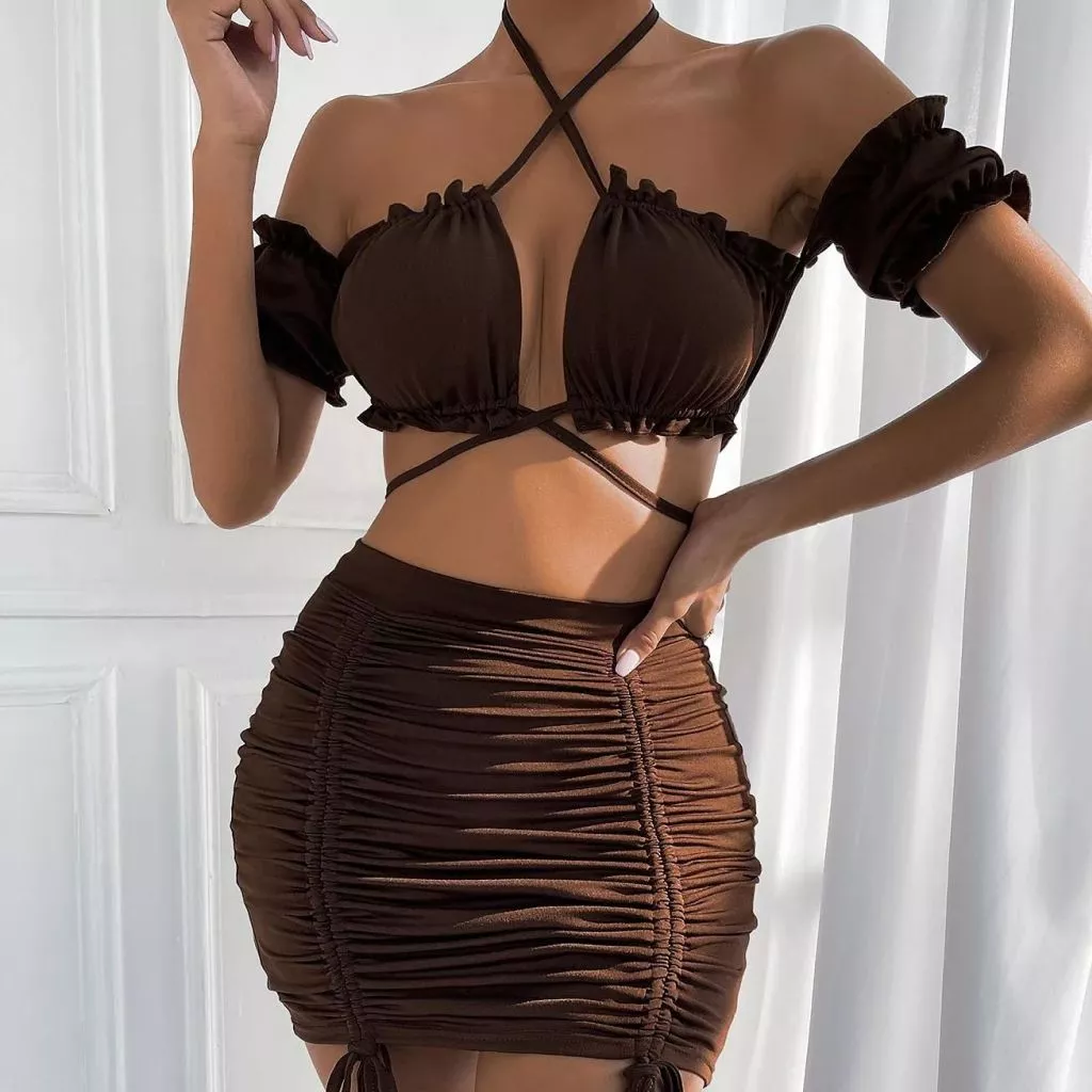 Elegant Ruffle Two-Piece Crop Top & Mini Skirt Set