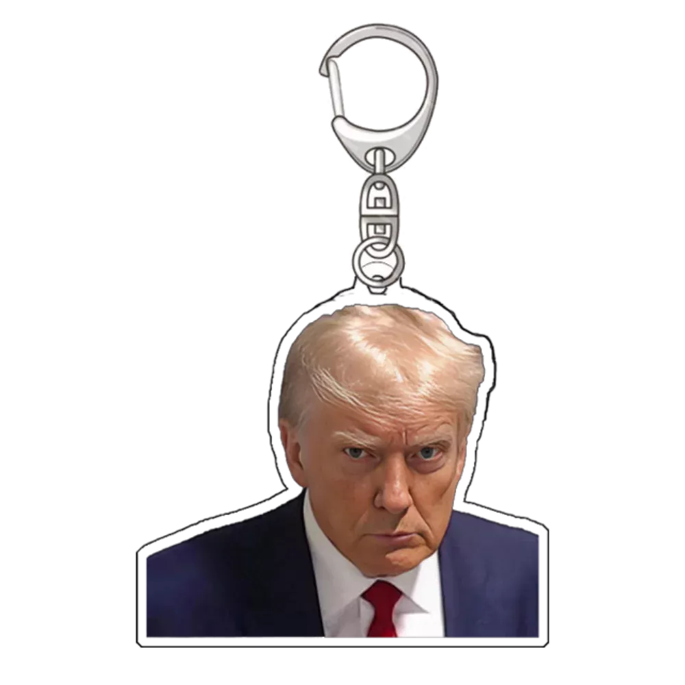 The iconic mug shot of Donald Trump with the bold “Never Surrender” caption offers a humorous take on political memorabilia. Crafted from a durable iron alloy, this keychain is designed to withstand the rigors of daily use while keeping its eye-catching appearance intact. The star-shaped, classic style acrylic brooch adds an extra layer of charm, making it a versatile piece that’s sure to spark conversations.