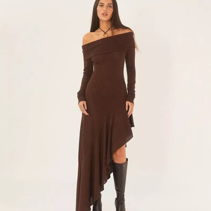 Townlike Inclined Shoulder Elegant Maxi Long Dress
