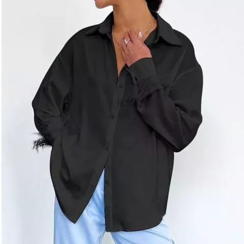 Don’t wait! Add this exquisite piece to your collection today and embrace elegance like never before. Step out in style with our Elegant Feather Cuff Blouse.