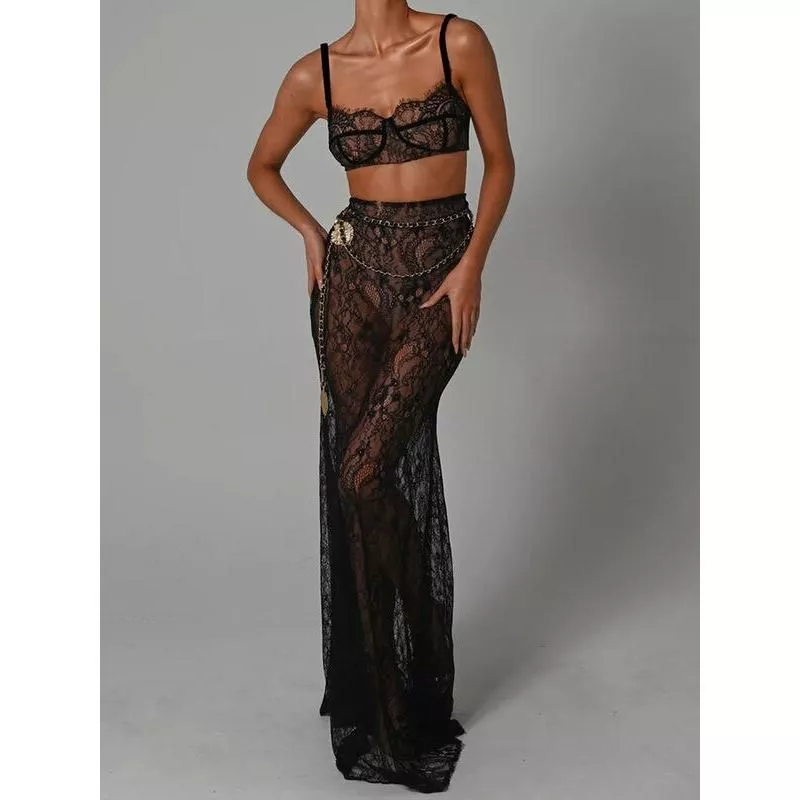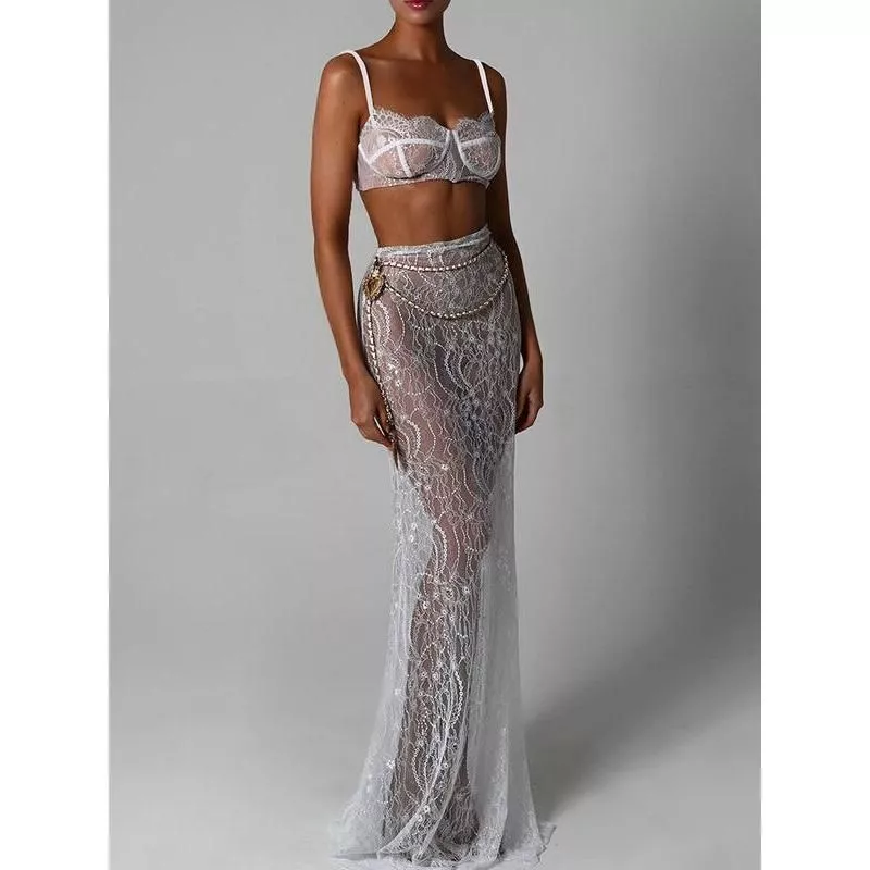 Introducing a stunning ensemble that blends sophistication with a touch of allure – our Sheath Crop Top and Maxi Skirt Set. Designed for the modern woman who loves to make a statement, this set is perfect for elegant parties, beach outings, and any event where you want to stand out. The intricate lace design and floor-length skirt exude a sense of luxury and fashion-forward style.