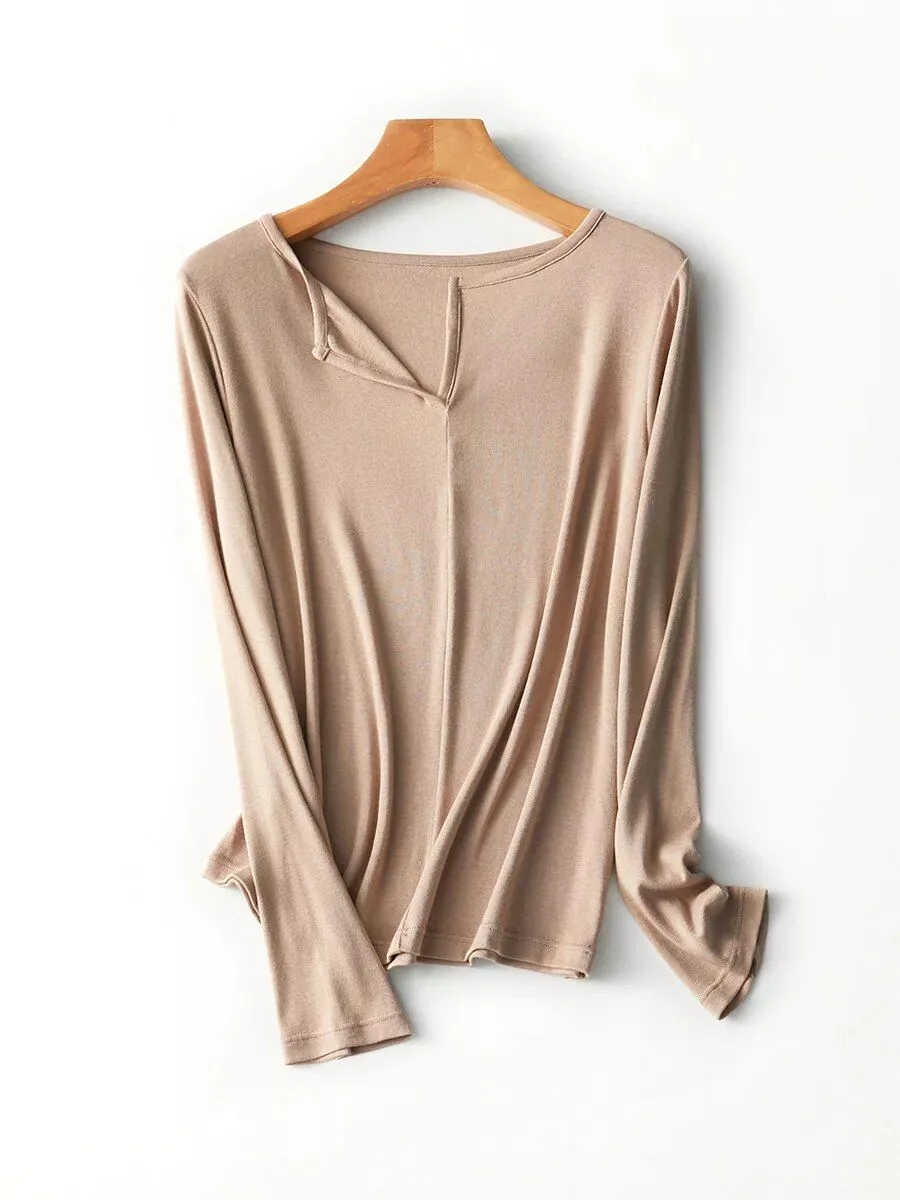 Experience the luxurious touch of silk and wool, enhanced with the durability of spandex and the softness of viscose. Our tee is designed to offer a slight stretch, ensuring a comfortable fit that moves with you. The classic solid pattern, combined with a sophisticated square collar, adds a timeless appeal to this casual piece.