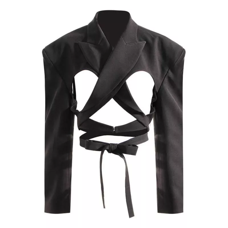 Unveil your inner fashionista with our Fashion Forward Women’s Blazer, a perfect blend of sophistication and trendiness. Elevate your style game with this unique piece that boasts a notched collar, slim cut-out design, and a backless, bandage waist. It’s not just a blazer; it’s a fashion statement.