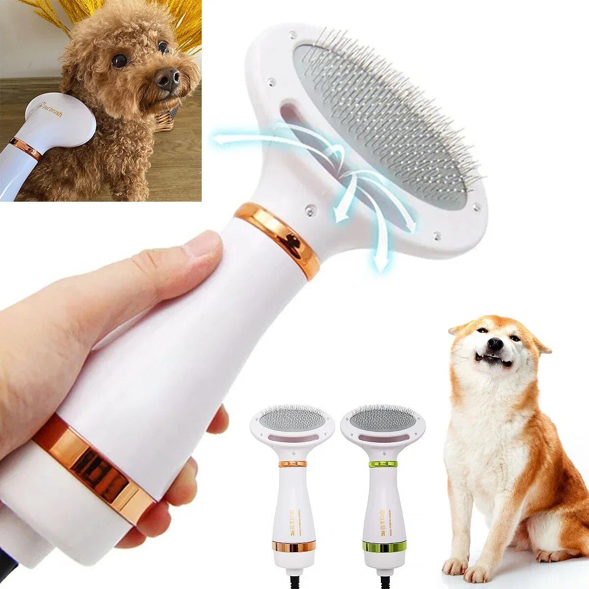 [2 in 1 Pet Grooming Dryer] This pet grooming dryer is a combination of a dog hair dryer and a hair brush to make it easier to dry your pet after a bath, and a smooth brush to remove tangles and loose fur, Let drying and grooming go hand in hand.
