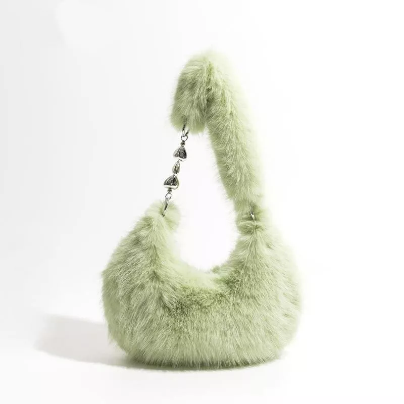 Chic Fuzzy Faux Fur Half Moon Shoulder Bag