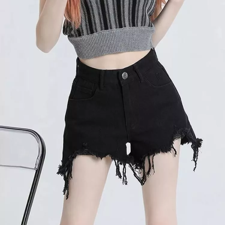 Our shorts are not just any ordinary pair of denim. They are crafted with attention to detail and designed for the fashion-conscious. The high waist cut provides a slimming effect, while the ripped and striped details add a trendy, streetwear vibe. The non-stretch fabric ensures they hold their shape all day, making you look and feel your best. Suitable for young adults aged 18-24, these shorts are a versatile piece that can be dressed up or down depending on the occasion.