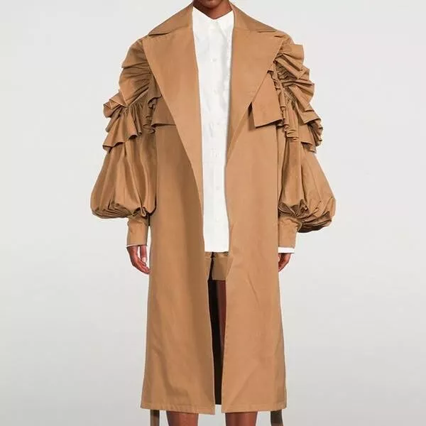1. Timeless Elegance: The solid pattern and ruffle trim make this trench coat a timeless piece that never goes out of style.